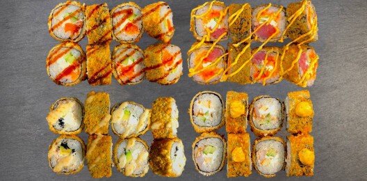В состав сета входят роллы: Филадельфия с огурцом, Калифорния с крабом, Чизугорь, Фреш ролл с тунцом, Маки с креветкой (в комплекте к сету идет 3 набора (палочки, соевый соус, имбирь, васаби)